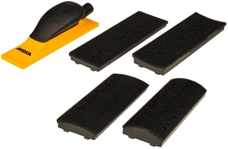 O unealtă multifuncțională concepută pentru șlefuirea suprafețelor concave, convexe și plate datorită talerelor speciale atașate unui corp de bloc de mână. Înlocuirea diferitelor plăci este rapidă și ușoară. Acest kit conține:o rindea de mână 70 x 198 mm, un adaptor pentru furtun Ø 20/28 mm diametru exterior 4 talere schimbabile (Convex cu R = 160 mm, Concav cu R = 52 mm, Concav cu R = 100 mm și Plat) . Blocurile de șlefuit manual Mirka® sunt special concepute pentru șlefuirea manuală în combinație cu produsele revoluționare de șlefuire cu plasă de la Mirka, deși pot fi utilizate și cu alți abrazivi de prindere. Pentru a asigura o șlefuire fără praf, blocul de șlefuit manual trebuie pur și simplu conectat cu un furtun la un sistem de extracție a prafului.